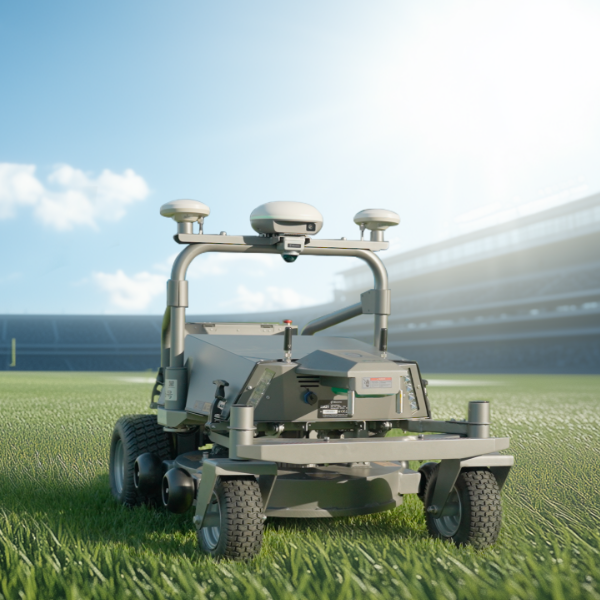 Her er maskinen som du selv kan køre og klippe områder med -men den kan også klippe som robot – en fantastisk maskine til alle anlægsgartnere og kommuner!