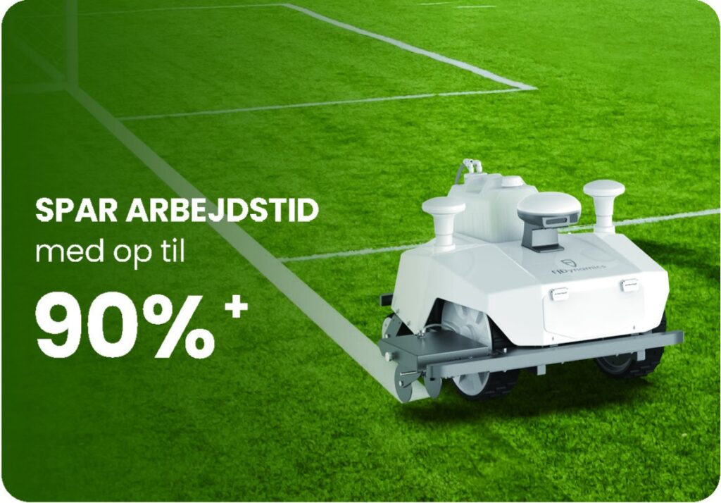 RLM02 er en eldrevet linjemarkeringsrobot udviklet til sportsbaner og grønne områder. Den leveres med en 20 liters malerbeholder og trinløs justering af linjebredden fra 3 til 8 cm. RLM02 kan betjenes via tablet, køre fuldautomatisk med GPS og basestation, og tilvælges med laserkit for millimeternøjagtig markering – selv i områder med svagt signal. Med op til 5 timers driftstid på ét batteri (0,5 kWh) og mulighed for hurtig batteriskift, klarer den nemt flere baner i træk med minimal indsats.